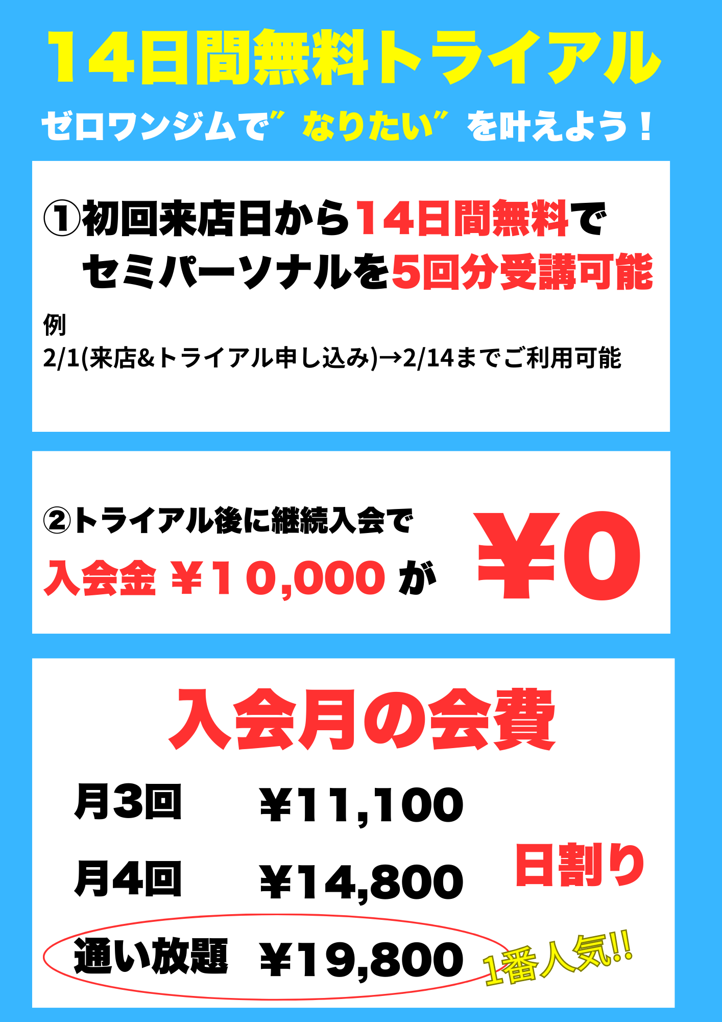 ゼロワンジムが、あなたの挑戦を全力で応援します!!